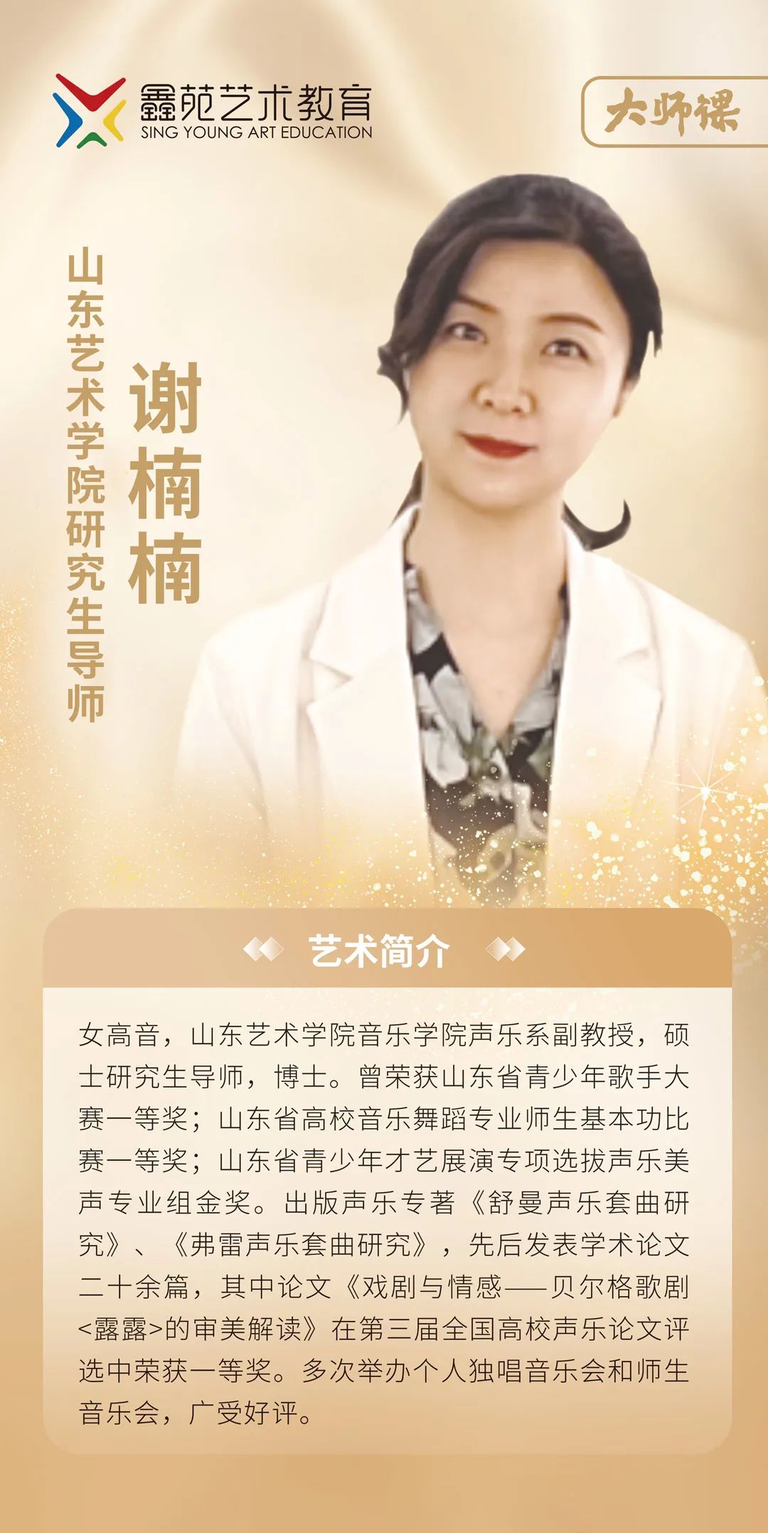 10月12日,美育谷丽山-鑫苑音乐厅将为大家推出女高音歌唱家谢楠楠教授的声乐讲座,邀请各界音乐学子与爱好者走进我们的声乐世界,和名师一起研讨分享,交流体验,感受声乐艺术的魅力,领略声乐演唱的力量!
