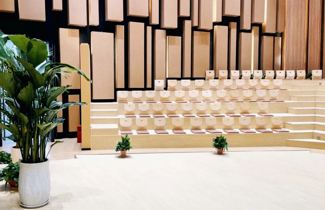 音乐厅设计规划参考主流音乐厅设计理念,匠心打造。环形观众席可容纳260余人,先进的音响设备,舞台布置等每个细节都展现着艺术气息。漫步在音乐厅中,明显能感觉到空间生动起来,极富感染力的氛围感,更让人惊艳又震撼!